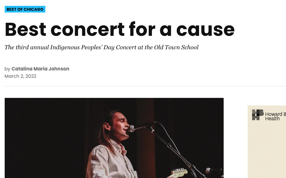 Chicago Reader’s “Best of Chicago 2021”-Best concert for a cause award